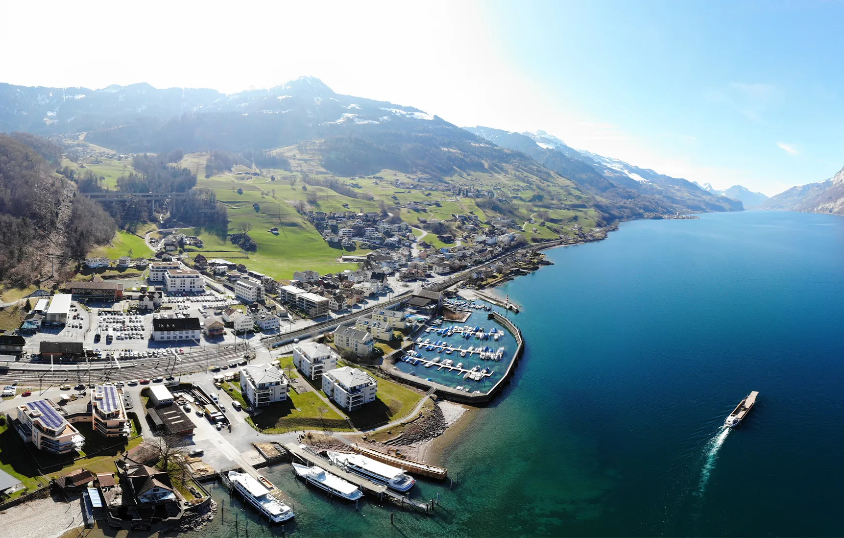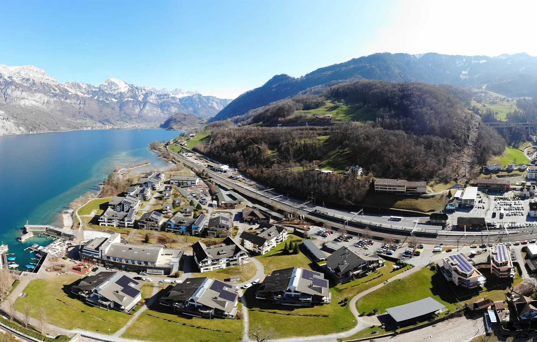 Unterterzen vereint atemberaubende Natur mit urbaner Erreichbarkeit. Der Blick auf den Walensee und die imposanten Berge schafft ein einzigartiges Lebensgefühl. Nur wenige Schritte zur Talstation Flumserberg und direkte Bahnverbindung nach Zürich und Chur – perfekt für Freizeit, Alltag und Investment.